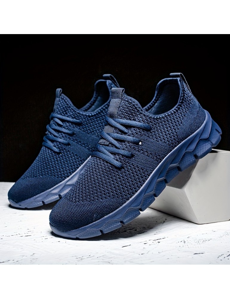 • Women's Breathable Flying Woven Sneakers, Casual Solid Color Running Shoes, Lightweight Lace Up Athletic Shoes