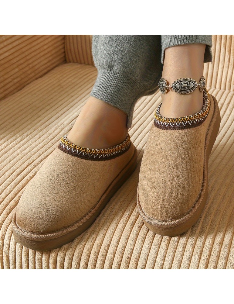 Women's Plush Lined Flatform Boots, Thermal Soft Sole Backless Snow Boots, Winter Warm Outdoor Ankle Boots