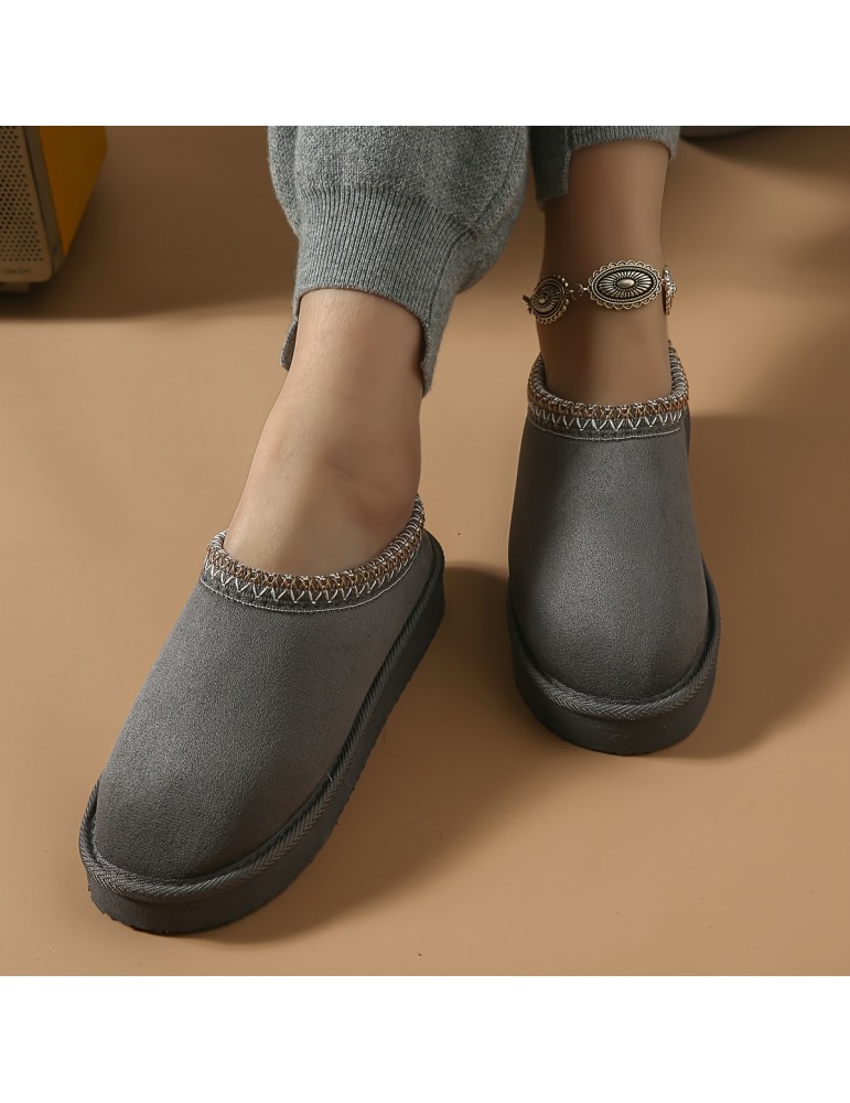 womens plush lined flatform boots thermal soft sole backless snow boots winter warm outdoor ankle boots details 1