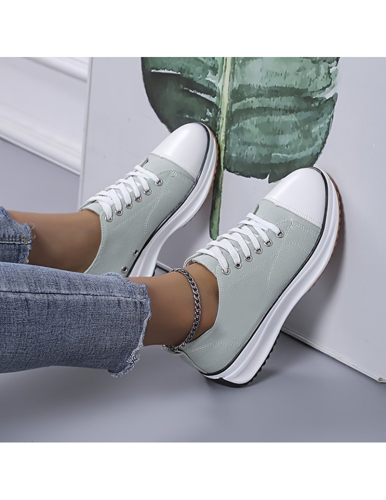 • Women's Solid Color Casual Sneakers, Lace Up Platform Soft Sole Sporty Trainers, Breathable Low-top Skate Shoes