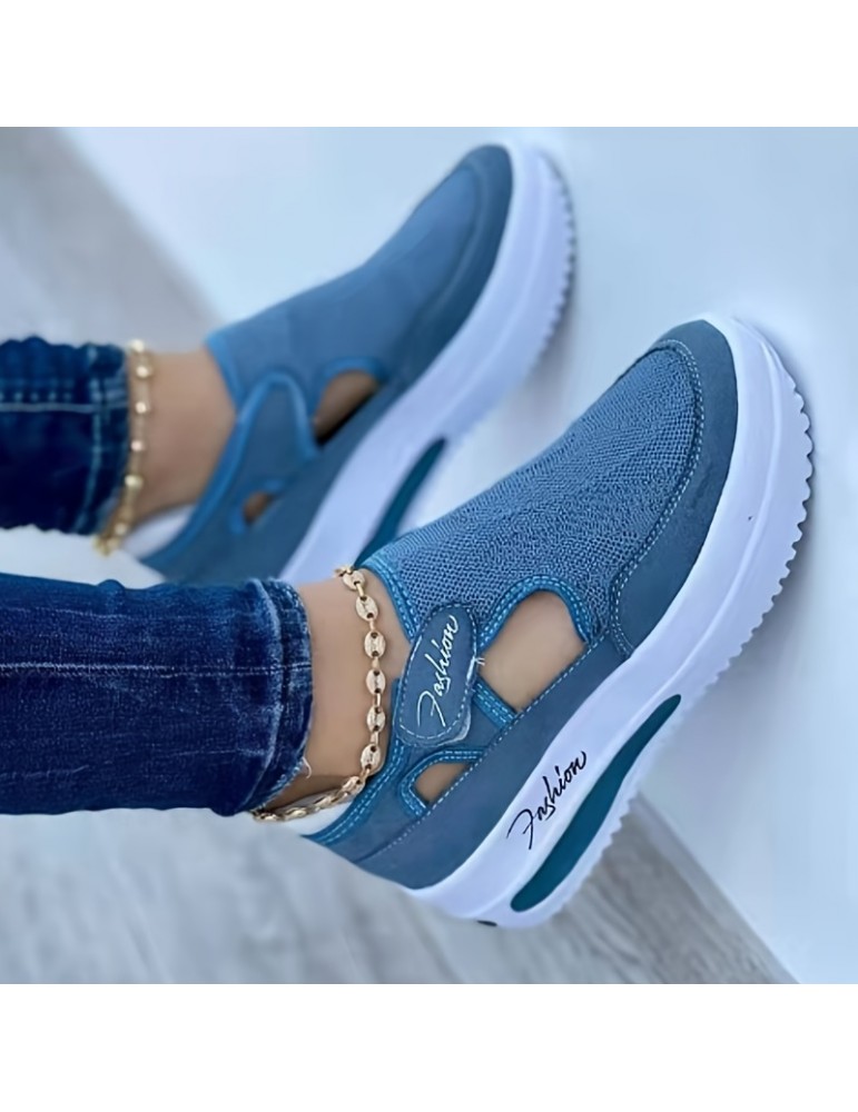 Women's Mesh Panel Platform Sneakers, Round Toe Low-top Versatile Shoes, Breathable Comfy Summer Shoes