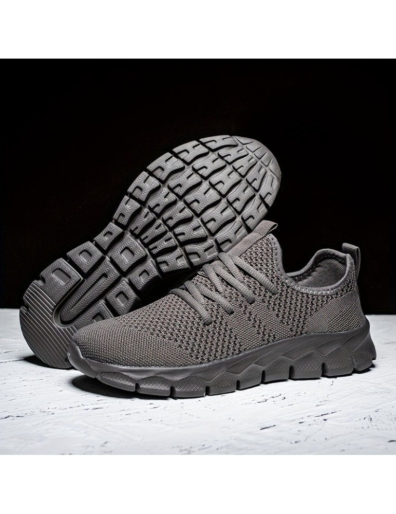 • Women's Breathable Flying Woven Sneakers, Casual Solid Color Running Shoes, Lightweight Lace Up Athletic Shoes