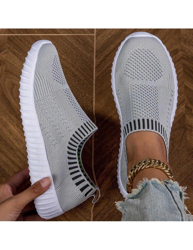 Women's Mesh Sports Shoes, Comfort Knit Low Top Slip On Running Shoes, Casual Breathable Walking Shoes