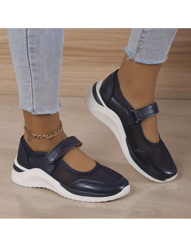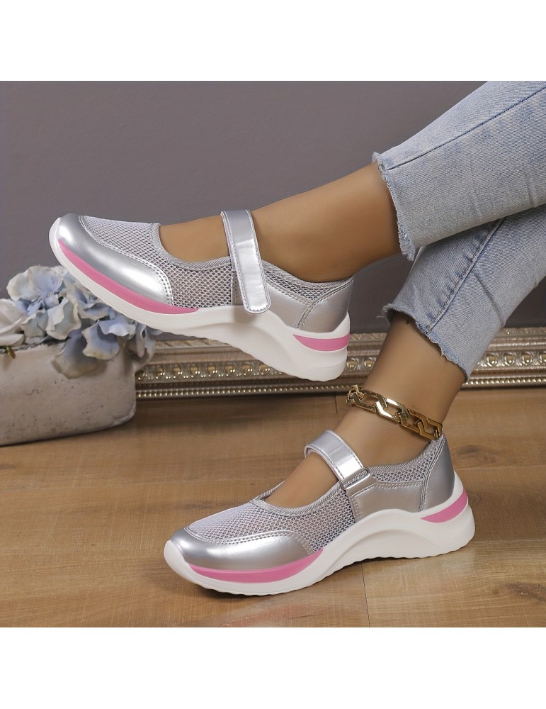 • Women's Mesh Panel Platform Sneakers, Round Toe Low-top Versatile Shoes, Breathable Comfy Summer Shoes