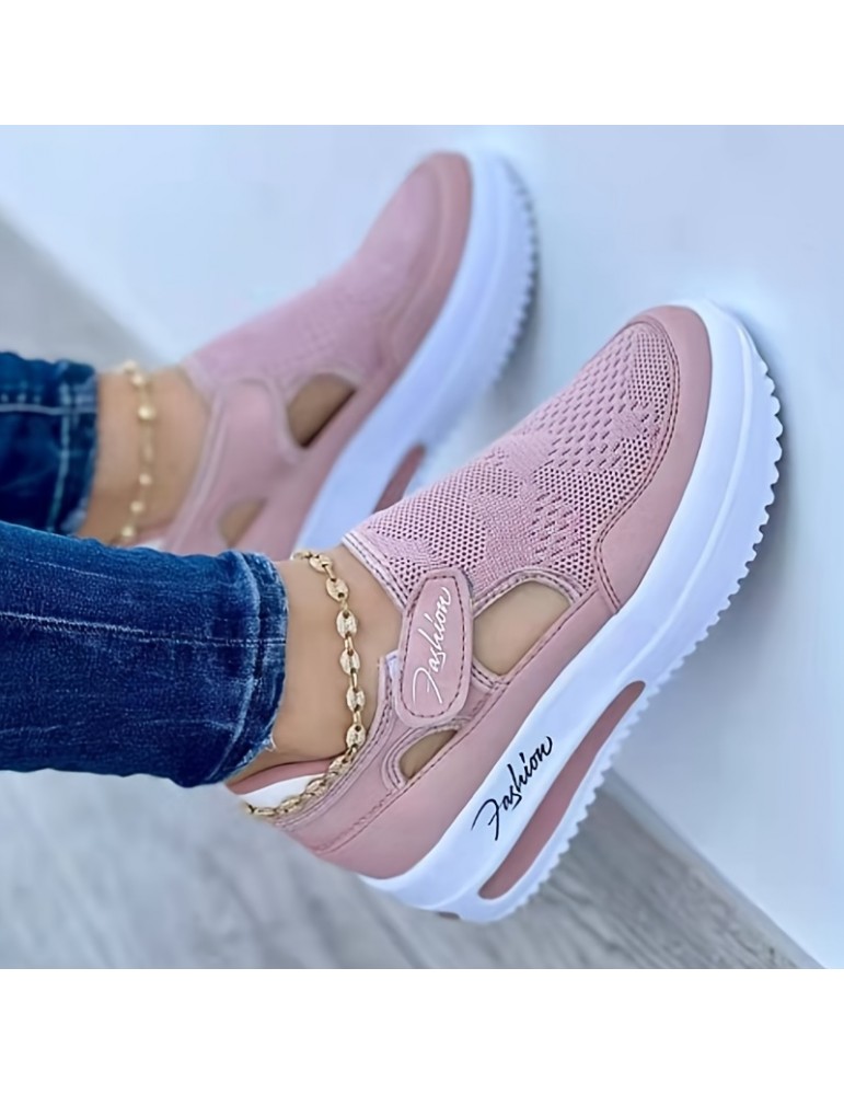 Women's Mesh Panel Platform Sneakers, Round Toe Low-top Versatile Shoes, Breathable Comfy Summer Shoes