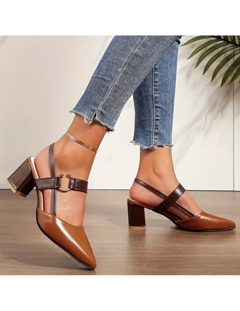 • Women's Trendy Chunky Heel Sandals, Elegant Point Toe Dress Pumps, Fashion Slingback Heels